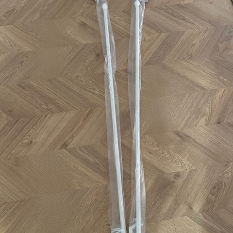 2 obrutna gardinskenor från Jysk, 150cm långa. Innehåller Krokar+glid+ändstopp.