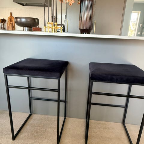 Mio barstolar trä med svart skinn sits