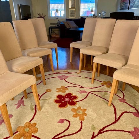 Stolarna är hela och stabila. Stålrörsstomme och sitsar i plast.