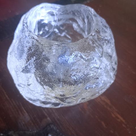 Kosta Boda glasljushållare i tre olika färger: orange, grön och klar/vitmelerad.