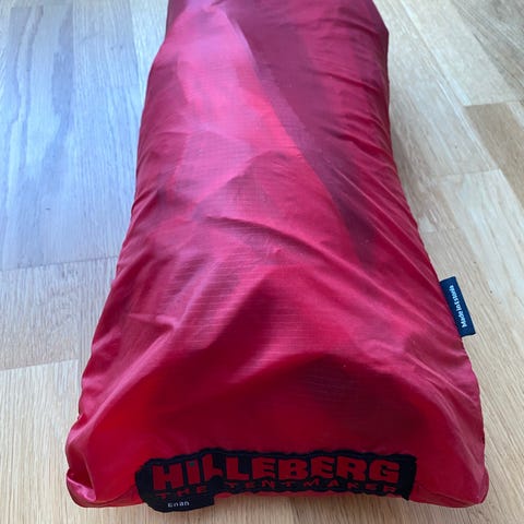 Hilleberg Nallo 3 tält i röd färg. Tältet levereras i packpåse med tältpinnar och tältstänger enligt bilderna. Inköpt 2020 och mycket sparsamt använt. Uppskattningsvis 15 nätter. Inga tecken på slitage eller skador. Nya resår i tältstängerna.