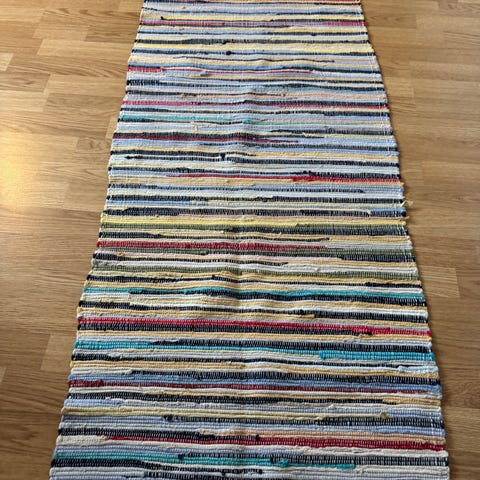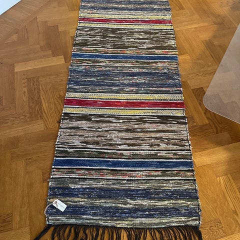 in bred, hemvävd trasmatta från Dalarna