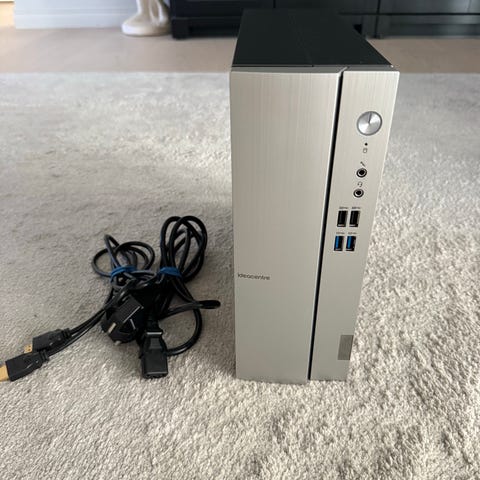 Lenovo stationär dator. Chassit är i silverfärg med frontpanel som har flera USB-portar, hörlurs- och mikrofonuttag samt strömknapp. Baksidan har ventilationsgaller och anslutningar för ström och övrig kringutrustning. Datorn är lämplig som skrivbordsdator för hem- eller kontorsbruk. Datorn är utrustad med Windows 10. Använd under mindre tid, därav priset. Är dock absolut villig att sänka priset vid snabb affär. Mått finns på bilderna.