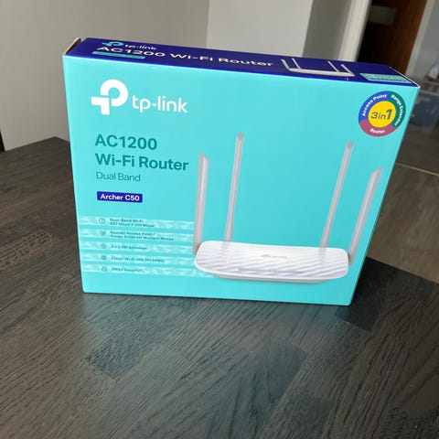 Router med stöd för 4G+ LTE och dual band WiFi (2,4 GHz och 5 GHz). Upp till AC1200-hastighet trådlöst, två externa antenner för bättre täckning samt flera LAN-portar för trådbunden anslutning. Avsedd för användning med SIM-kort för internetdelning i hem, fritidshus eller mindre kontor.