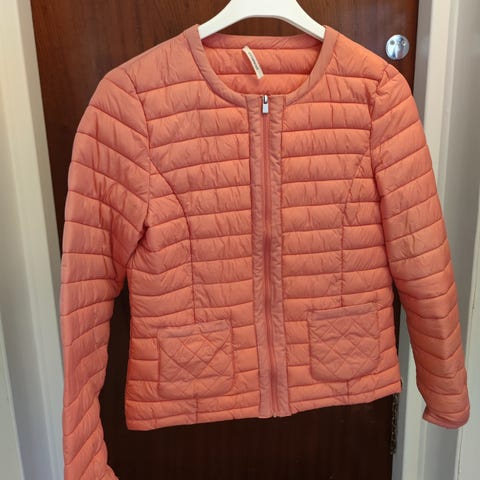 Etage danish design jacka för dam i storlek 38. Jackan är flerfärgad med mönster och tillverkad i polyamid. Modellen har hög krage och dragkedja framtill. Passar som lättare ytterplagg i vardagen.