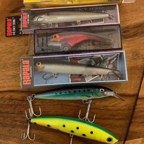 Fiskedrag i flera olika modeller och färger.