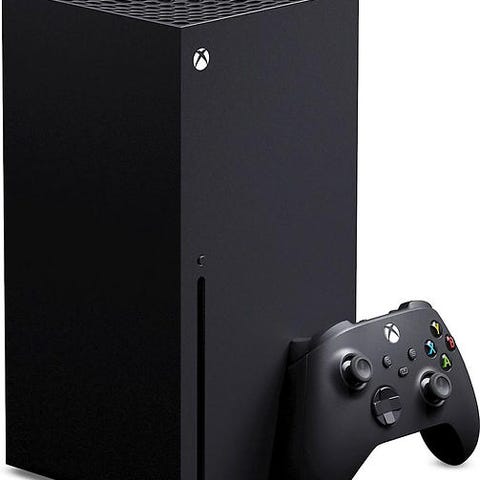Microsoft Xbox Series X spelkonsol i svart färg. Stationär konsol i Xbox Series-familjen med optisk skivenhet på framsidan. Konsolen är avsedd för hemmabruk och ansluts till TV eller bildskärm via HDMI. Stöd för trådlösa handkontroller och nätverksanslutning för onlinespel och nedladdning av digitalt innehåll. Passar för spel, streaming av media och annan underhållning i vardagsrum eller spelhörna.