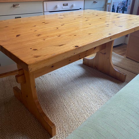 Mycket charmig liten allmoge köksbord passar perfekt till stuggan ,trädgården mm . på börjad renovering men tiden inte räcker. Bordet är stabill med mycket patina