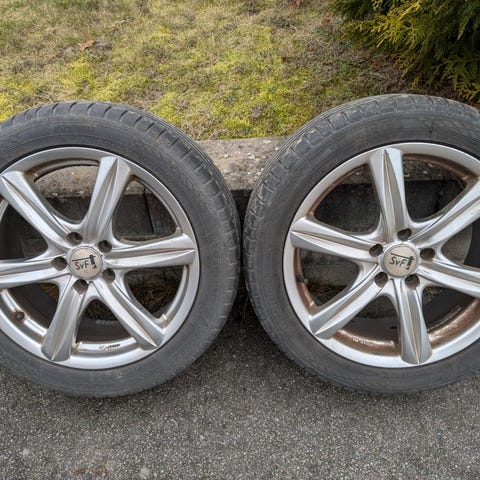 Fälgar i okej skick - Däcken rullar minst en säsong till.