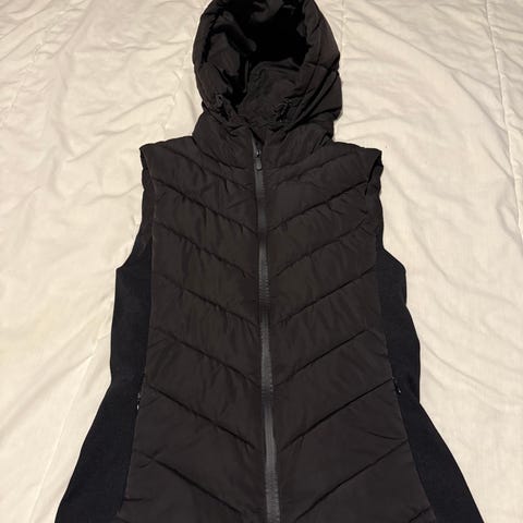 Livelo väst för dam i svart fuskpäls, storlek S. Väst med krage och dragkedja framtill. Yttermaterial i mjuk fuskpäls med struktur och slät insida. Ärmlös modell som kan användas över tröja eller tunnare jacka för extra värme.