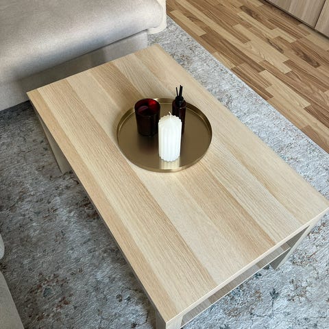 Soffbord säljes. Liten knappt synlig upphöjning ca 2x2 cm i ytan efter fukt. Endast kosmetiskt, därav priset.