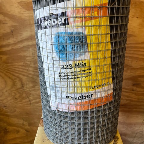 Armeringsnät i metall, lämpliga för bygg- och trädgårdsprojekt. Nätsektionerna kan användas till exempelvis förstärkning i betong, stöd för klätterväxter eller enklare avgränsningar. Förvaras utomhus och har synlig ytrost, vilket är vanligt för obehandlat armeringsstål.