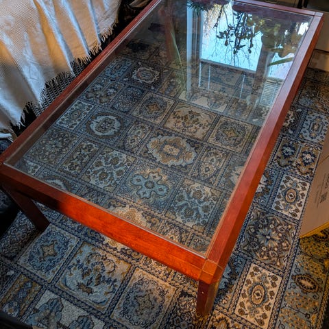 Som bild visar liten fläck på trä men i övrigt bra skick, lite smårepor i glaset.