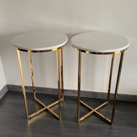 Sängbord/sidobord från Mio, svarta ben och marmormönstrade glasbordsskivor...