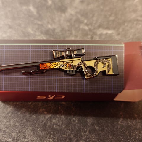 Han Solo DL-44 blaster replika i plast med svart kropp, brun kolv och grå mynning. Modellen är utrustad med fast monterat sikte och levereras med ställning och liten namnskylt med texten "Star Wars Han Solo DL-44 Blaster". Avsedd som samlarföremål eller dekoration, inte som leksak eller fungerande vapen.