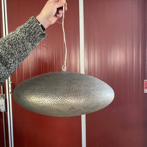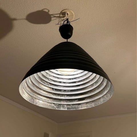 Taklampa i industriell design. Finns för upphämtning i Solna centrum.