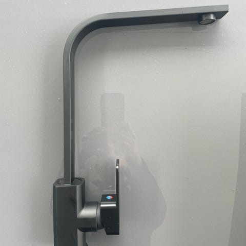 Köksblandare i svart utförande. Modellen har hög, svängd pip och två separata reglage. Passar montering i kök eller tvättstuga där en hög blandare önskas för att underlätta disk och rengöring av större kärl.