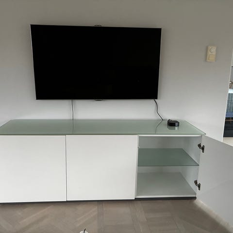 Har använts som en Tv-bänk, hål för sladdar finns.