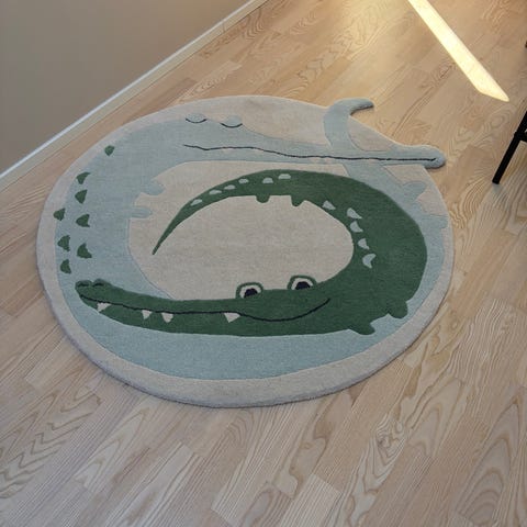 Superfin , tjock mjuk och ovanlig barnmatta med fint mönster i ullmix. 80% ull och 20% bomull. Bredd 120 cm och längd 180 cm. Tjocklek 2 cm. Kan hämtas på Fridhemsgatan vid Fridhemsplan.