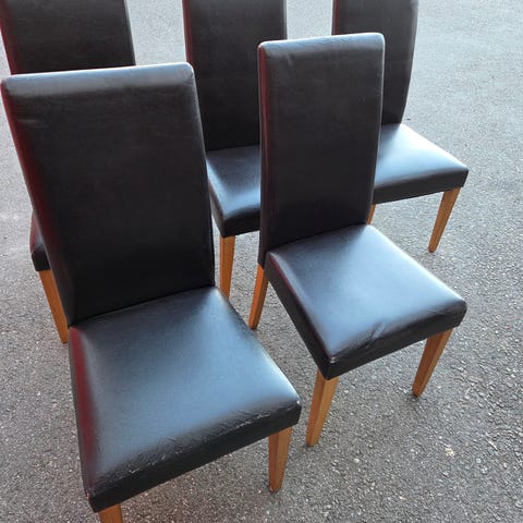 Säljes 4st stolar i skinnimitation med ben i Ek