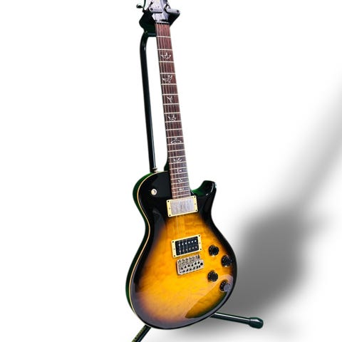 PRS McCarty Soapbar 10-Top i mycket gott skick. Premium 10-Top flammig lönn på mahognykropp, utrustad med P90 Soapbar-pickuper som ger ett öppet, dynamiskt och vintageinspirerat sound. Klassisk PRS-kvalitet med fantastisk spelkänsla och sustain. Levereras med original hardcase.
