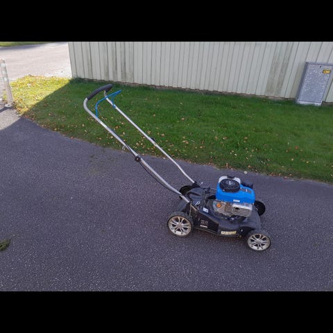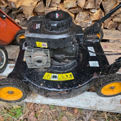 Säljer en äldre bensindriven gräsklippare (4-takt) som renoveringsobjekt.