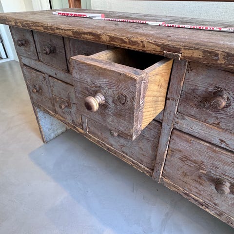 Antikt engelskt sideboard i ek med svarvade ben, från cirka 1930-tal. I gott skick för sin ålder med fin originalpatina. Samtliga handtag och beslag är original. Rymlig förvaring med lådor och skåp undertill. Klassisk tidlös design.