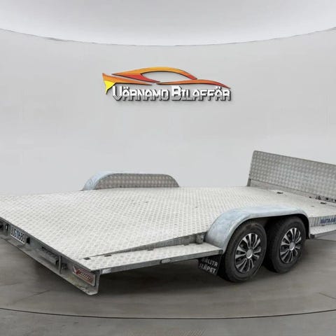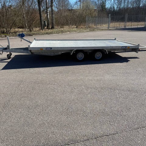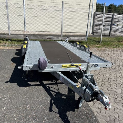 Stort lågbyggt biltransportsläp (biltrailer) där lastytans mått är hela 500cm x 209cm