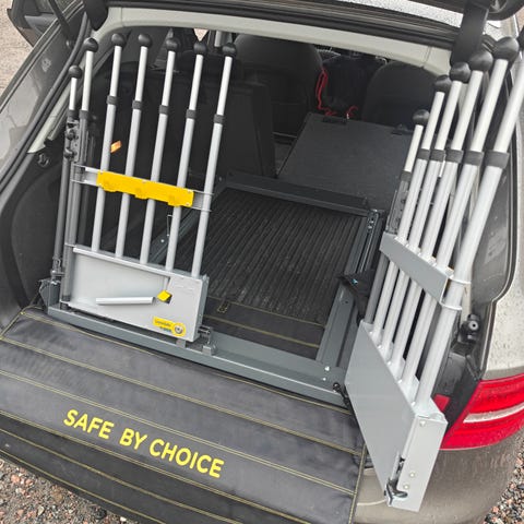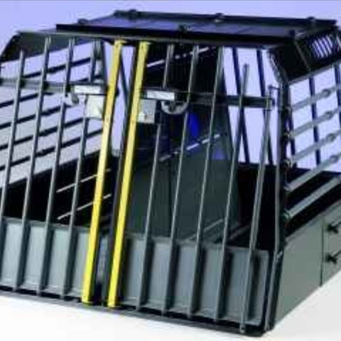 Dubbel hundbur i använt skick men inget som påverkar funktionen. Se bilder. Skiljevägg ingår men kan även tas bort. Nycklar finns att låsa med.
