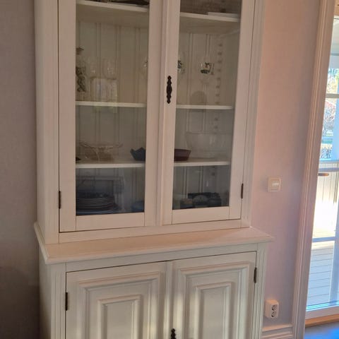 Vitrinskåp i furu, vitmålat