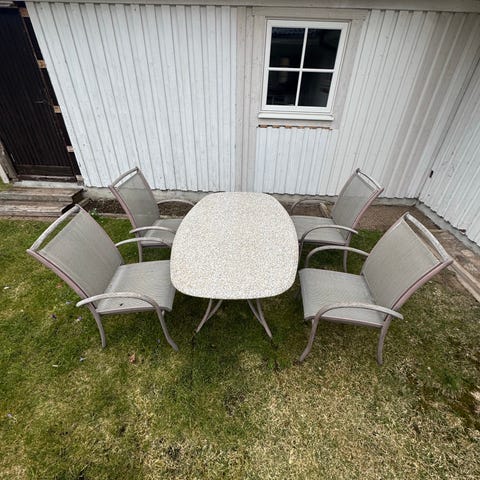 Trädgårdsgrupp runt bord med 4 stolar vit plast