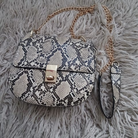 Väska i snygg design, justerbar axelrem, rejält handtag, flera fack en del med dragkedja. Mått bredd 27 cm, höjd 22 cm, djup 6 cm.