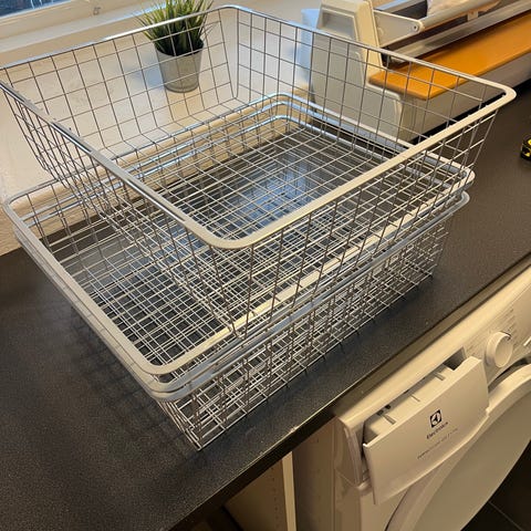 Fin trådback med 4 korgar i gott skick. Har även 3 till i ungefär samma storlek. Hör gärna av dig vid intresse så kommer vi överens.