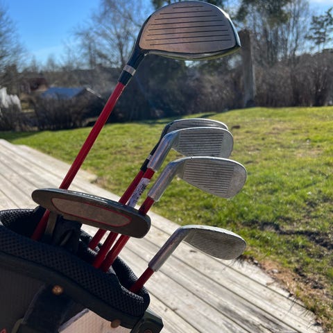 En Wilson Prostaff golfbag för juniorer, för ca 8-12 år. Innehåller även några klubbor som passar barn i åldern 8-12 år.