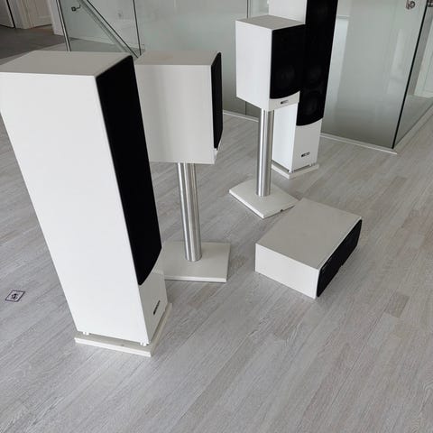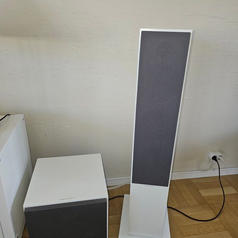 Inköpt 2020. Endast använt golvhögtalarna. Alla kablar och tillbehör ingår.