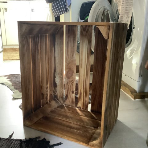 Två fina lådor eller backar i trä, ”äppellådor” (eller liknande).