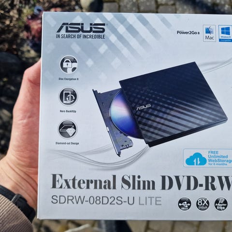 Asus extern slim DVD-RW optisk enhet i svart utförande. Ansluts via USB-kabel till dator för läsning och skrivning av CD- och DVD-skivor. Kompakt och tunn design som passar för bärbara och stationära datorer utan inbyggd optisk enhet. Levereras med USB-kabel, snabbstartsguide och orginalkartong enligt bild.
