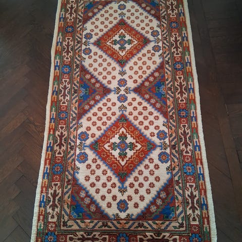 Keshan Super Prado matta i röd ton med orientaliskt mönster. Mattan är vävd i ull, med fransar i kortändarna. Lämplig som gångmatta eller för avlånga utrymmen som hall eller korridor. Traditionellt mönster med flera medaljonger och dekorativ bård runtom.