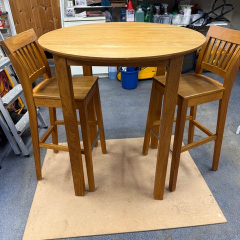 Ett ikea håverud matbord med 4 st stig barstolar. Bra skick knappt använt. Mått enligt bilden. Finns i Örebro.