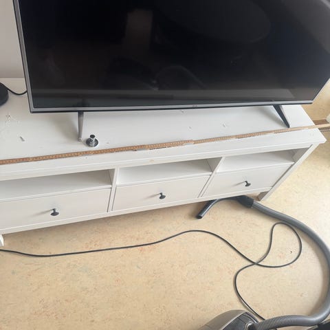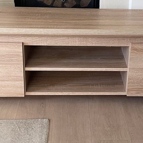 TV-bänk från Jysk. Vit med trä ben. Köptes för något år sedan men är i väldigt fint skick. Hämtas i Finspång. Mått: Bredd 150cm Höjd 50cm Djup 40cm