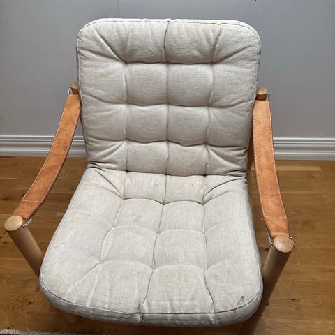 Swedese Bruno Mathsson fåtölj beige tyg med snurrstativ