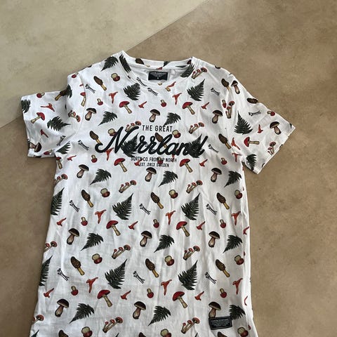 Quiksilver t-shirt för herr i storlek S. T-shirten är grön och tillverkad i bomull. Den har rund halsringning och tryckt Quiksilver-logga med grafiskt motiv både fram och bak. Passar som vardagsplagg eller till fritidsaktiviteter.