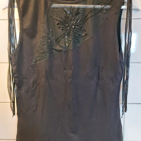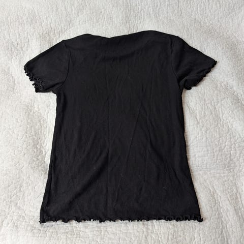 Gina Tricot topp i svart färg för dam i storlek M. Tillverkad i bomull. Modellen har korta ärmar och rak passform. Passar som vardagstopp eller att kombinera med kjol eller byxa.