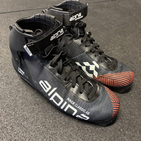 Alpina rullskridskor i storlek 39. Skorna har snörning och rem upptill för att ge stabilitet kring fot och ankel. Yttermaterial i syntet med förstärkningar runt hälen. Passar för rullskridskoåkning och träning på asfalt eller andra hårda underlag.