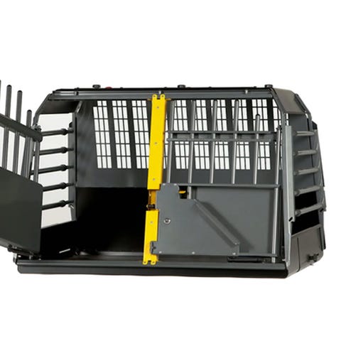 MimSafe Variocage Double hundbur i metall för transport av hund i bil. Modellen är en dubbelbur med två separata utrymmen och gallerkonstruktion för god ventilation. Buren har dörrar framtill samt justerbara delar för att passa i olika bilmodeller. Avsedd för säker och stabil transport av en eller två hundar i bagageutrymmet.