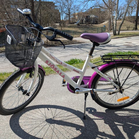Sjösala Smilla, inköpt för exakt 1 år sedan och används 1-2 månader men dottern har växt dig ur till denna säsong. Så gott som nyskick med tanke på att cykeln är mycket sparsamt använt. Inköpt från Intersport, kvitto finns.