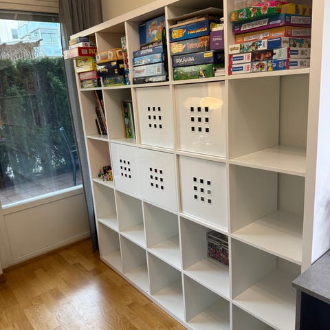 IKEA KALLAX Shelving unit, black-brown, 77x147 cm with 4 baskets and 4 inserts. Current total price at the store is ~2200kr.