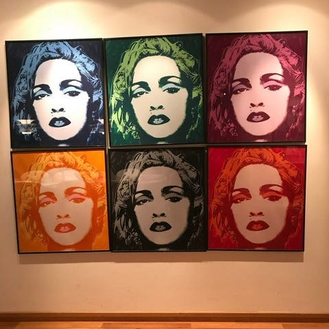 Set med tre pop art tavlor av Deborah Azzopardi från 1999.