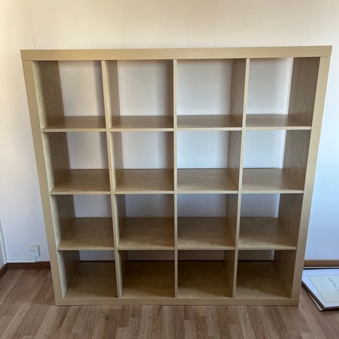 KALLAX Shelving unit, black-brown, 42x147 cm with 2 inserts. Current total price at the store is ~900kr.
