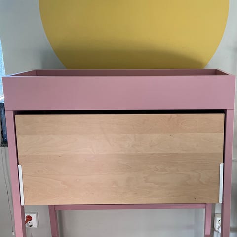 Rullvagn av björkträ med låda. Toppenskick och mycket lite använd.